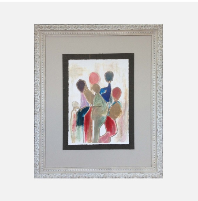 Lámina artística impresa de alta calidad para decorar espacios que buscan calidez, sensibilidad y un estilo artístico lleno de expresión. Las figuras humanas estilizadas, trabajadas con colores suaves y pinceladas difusas, transmiten unión y movimiento, siendo ideales para salones familiares, recibidores acogedores o espacios donde se quiera aportar un ambiente cercano y emotivo.